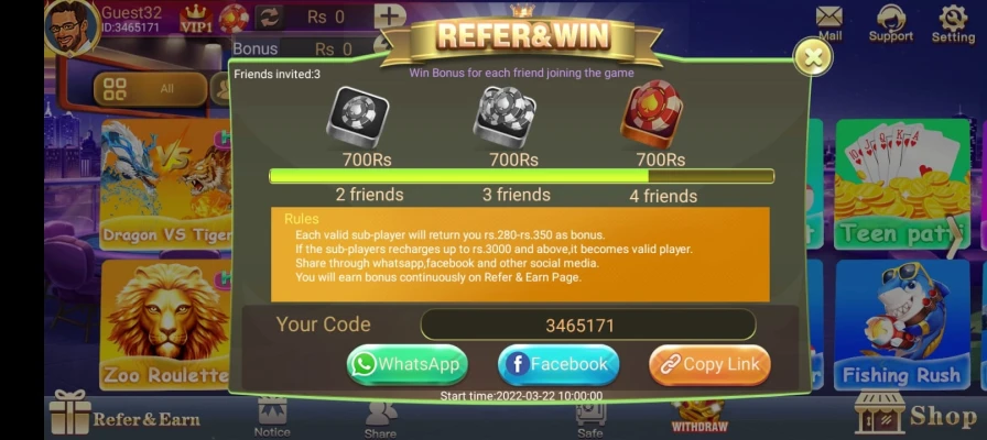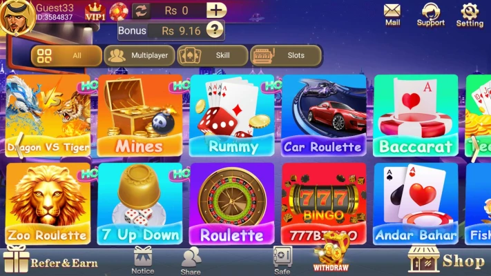 The platform offers thrilling gameplay with the opportunity for players to earn real cash. New users are welcomed with a bonus of Rs.1500, enhancing the initial gaming experience and encouraging them to explore the platform further.
